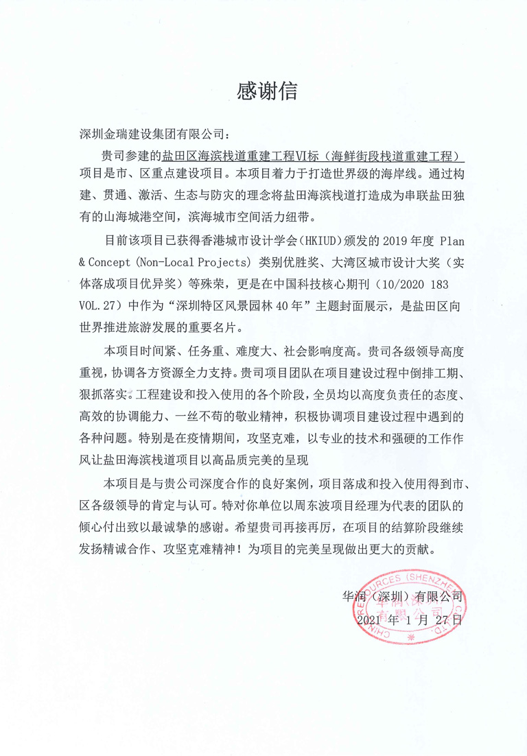 贵司参建的盐田区海滨栈道重建工程VI标(海鲜街段栈道重建工程)项目是市、区重点建设项目。本项目着力于打造世界级的海岸线。通过构建、贯通、激活、生态、与防灾的理念将盐田海滨栈道打造成为串联盐田独有的山海城港空间,滨海城市空间活力纽带。