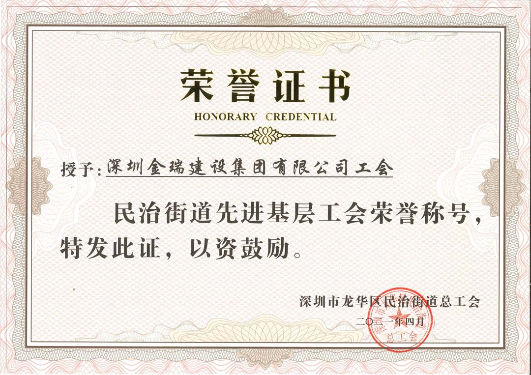 4月29日下午,民治街道庆祝“五一”国际劳动节暨表彰大会隆重召开,深圳金瑞建设集有限公司荣获“先进基层工会”荣誉称号。作为基层工会,我们将切实做好做活工会工作,当好广大职工的“娘家人”,同时,我们将初心不变,作为党联系职工的桥梁和纽带,始终坚定正确的政治方向,将党和政府的关怀送到职工的手中,建设公司的幸福家园!