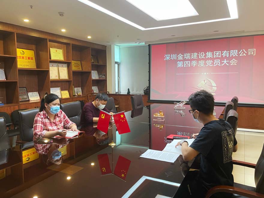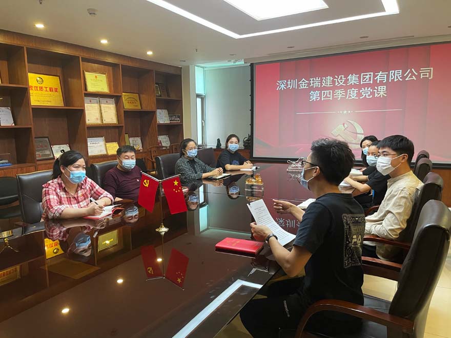 11月19日下午,金瑞建设集团党支部于公司大会议室召开了2021年第四季度党员大会暨第四季度党课学习会,集团党支部党员及公司员工参加了会议,会议由党支部书记黄伟亮主持。