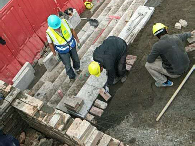 工程内容:广场铺装工程、道路工程、路灯工程、绿化、强弱电、给排水及设备采购等